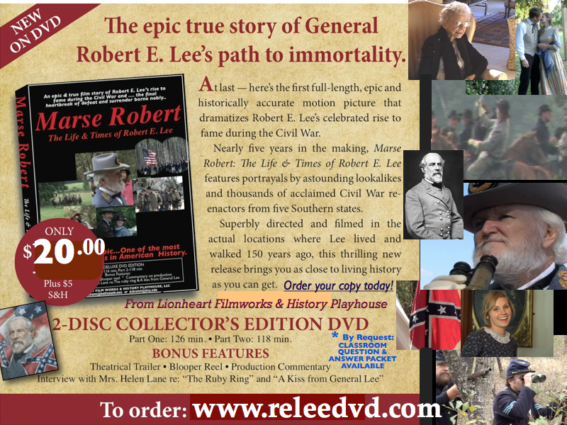Nearly five years in the making, Marse Robert: The life & Times of Robert E. Lee features portrayals by astounding look-a-likes and thousands of acclaimed Civil War re-enactors from five Southern states.